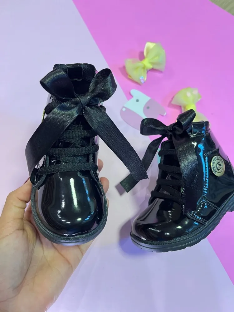 Botinha Baby CS com Fechamento em Cadarço de Fita de Cetim