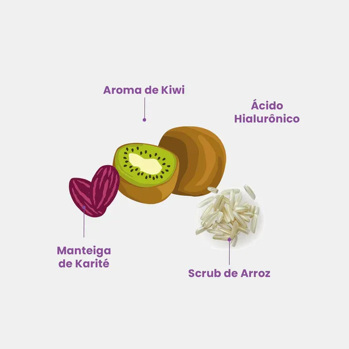 O Esfrega Boquinha é um esfoliante labial que possui aroma e cor de Kiwi. Seu efeito esfoliante retira as células mortas, deixando a boca lisinha, facilitando a absorção dos outros ativos, deixando os lábios super macios e hidratados. Sua boca macia, hidratada e lisinha.