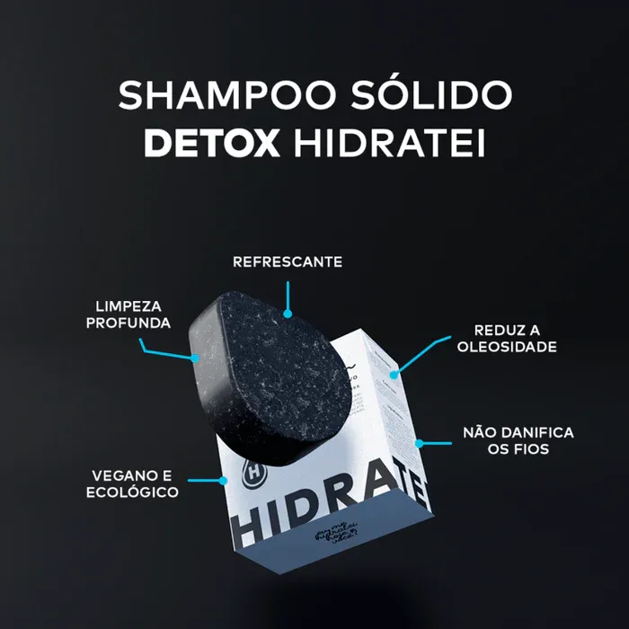 O shampoo sólido Detox traz praticidade, inovação e refrescância na hora de cuidar dos cabelos. Foi desenvolvido com ingredientes que promovem uma limpeza eficiente dos fios e do couro cabeludo, eliminando resíduos remanescentes de produtos anteriormente utilizados e causando sensação de frescor.